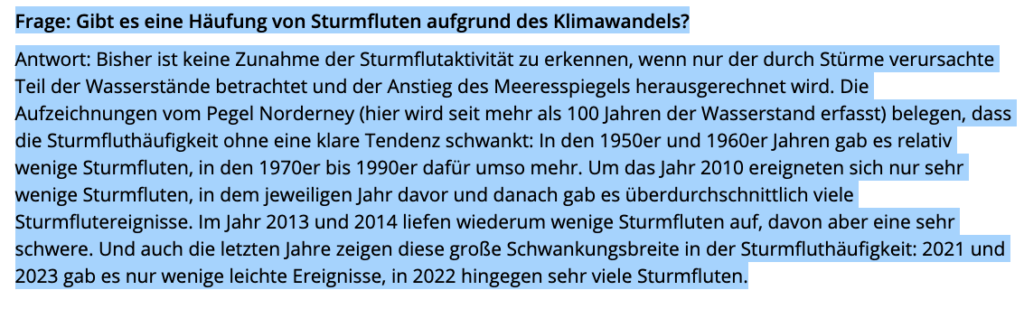Zur Beruhigung der Klimaalarmisten: Zugenommen haben Sturmereignisse an der deutschen Nordseeküste nicht, entgegen der vielen recherchefreien Medienbehauptungen, die nur auf der politisch korrekten Klimalinie berichten. Das weiß der Niedersächsische Landesbetrieb für Wasserwirtschaft, Küsten- und Naturschutz (NLWKN):